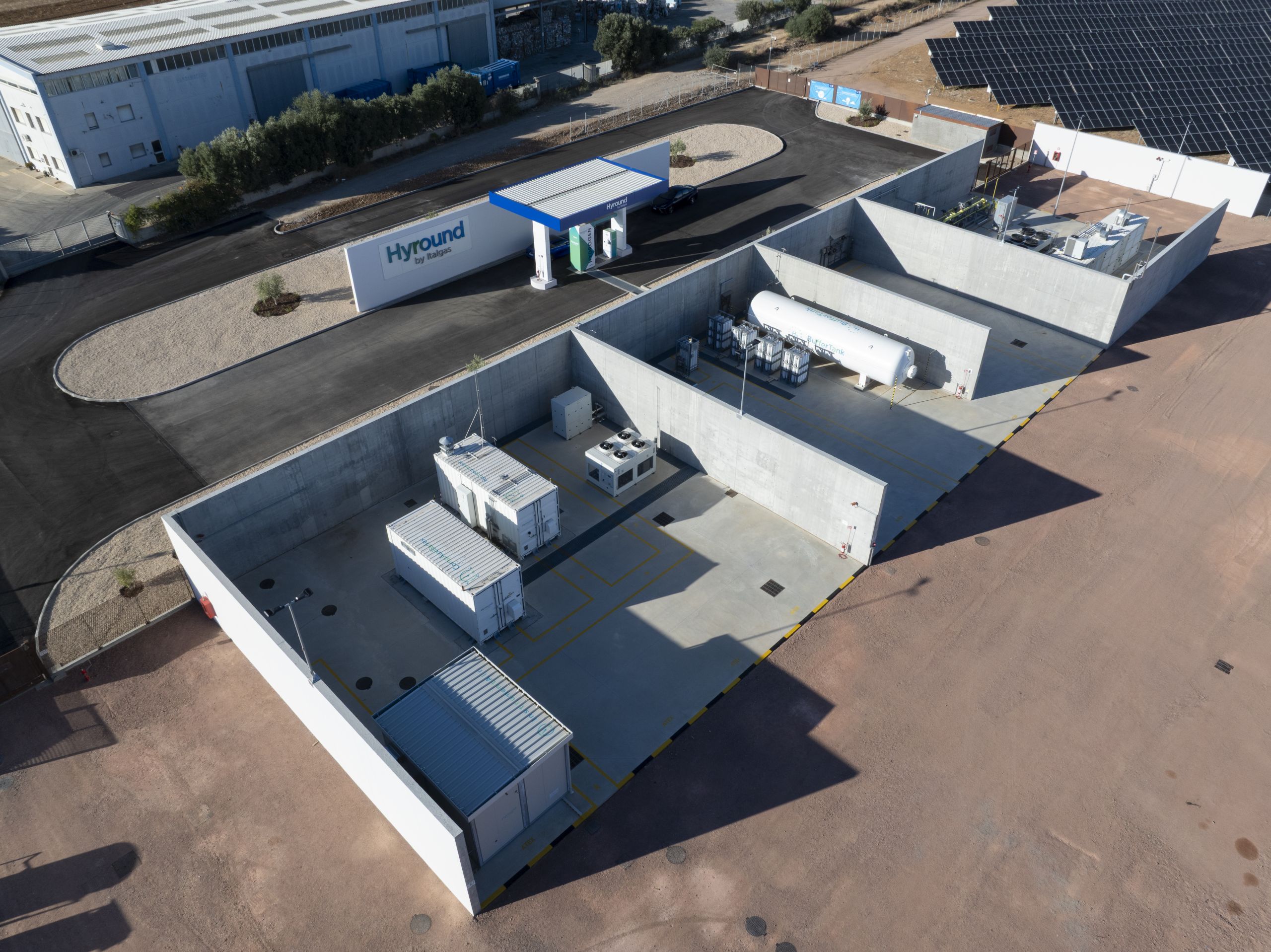 Hyround è il primo progetto in Italia a creare un ecosistema completo per la produzione, lo stoccaggio, la distribuzione e l’utilizzo dell’idrogeno verde. L’impianto è collegato direttamente alla rete di distribuzione cittadina e dispone di una stazione di rifornimento per auto e autobus alimentati a idrogeno.